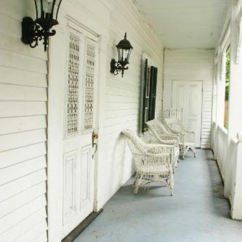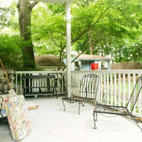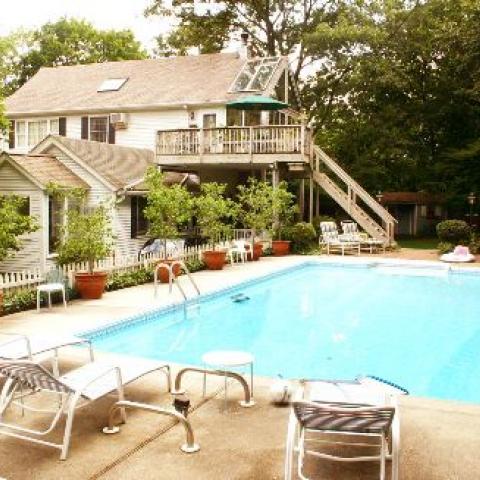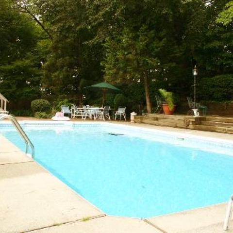 suburban pool garden traditional porch