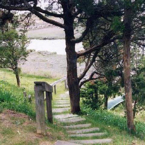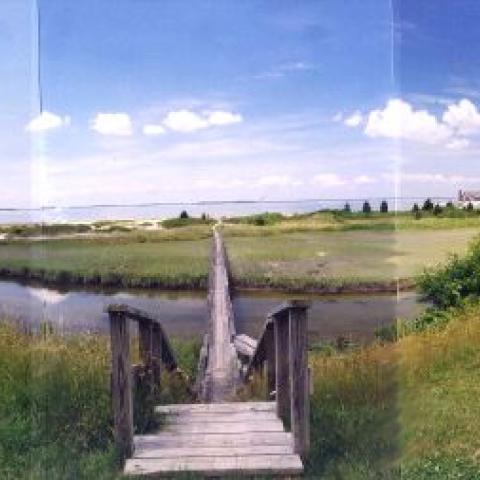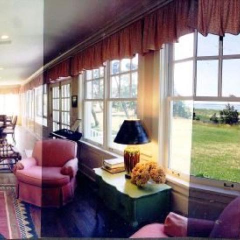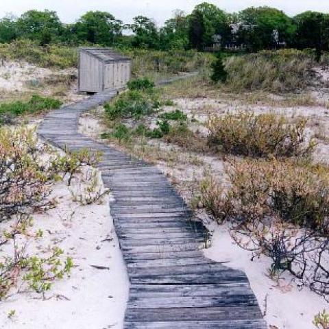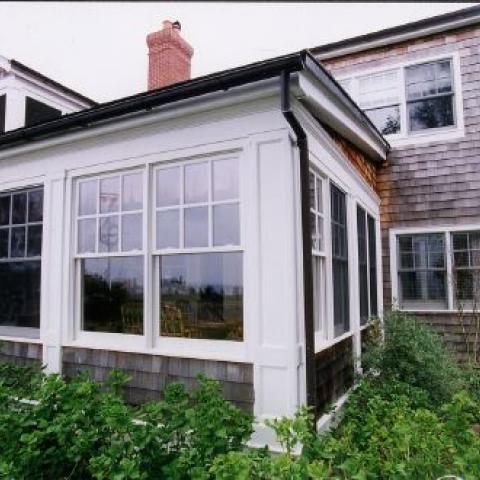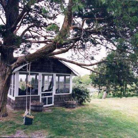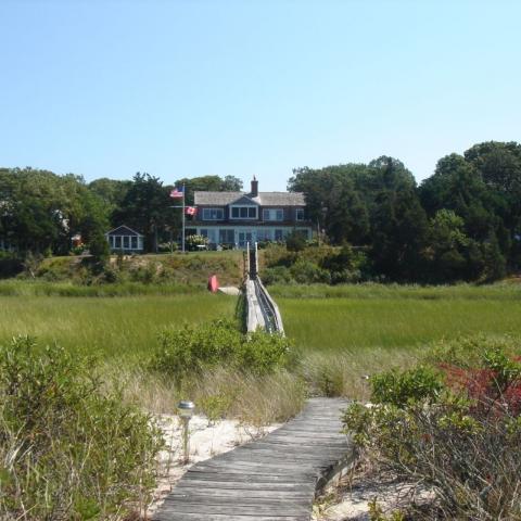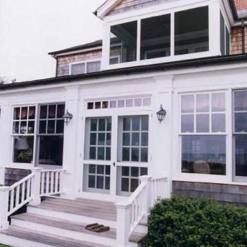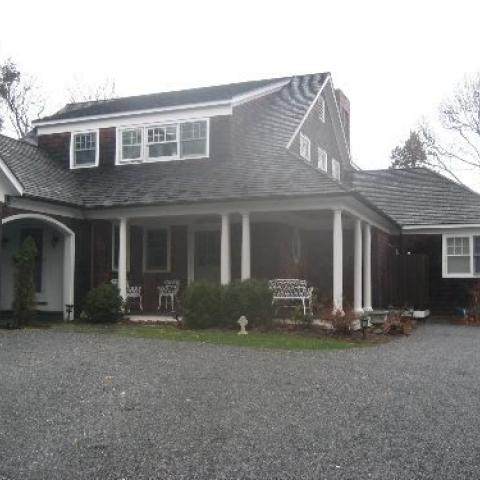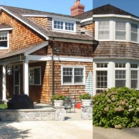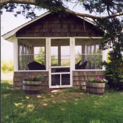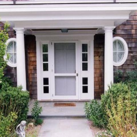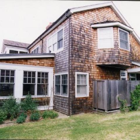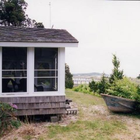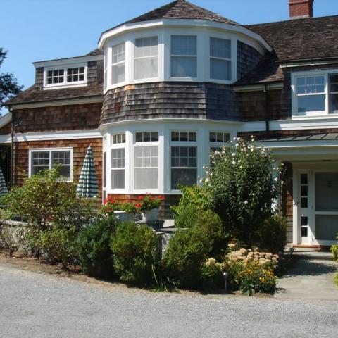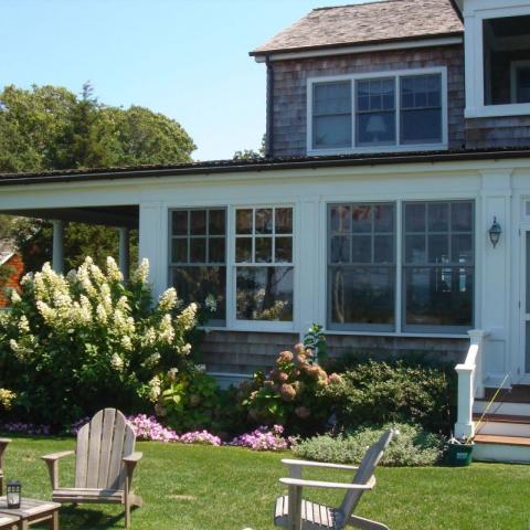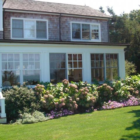 Hamptons shingled garden beach patio